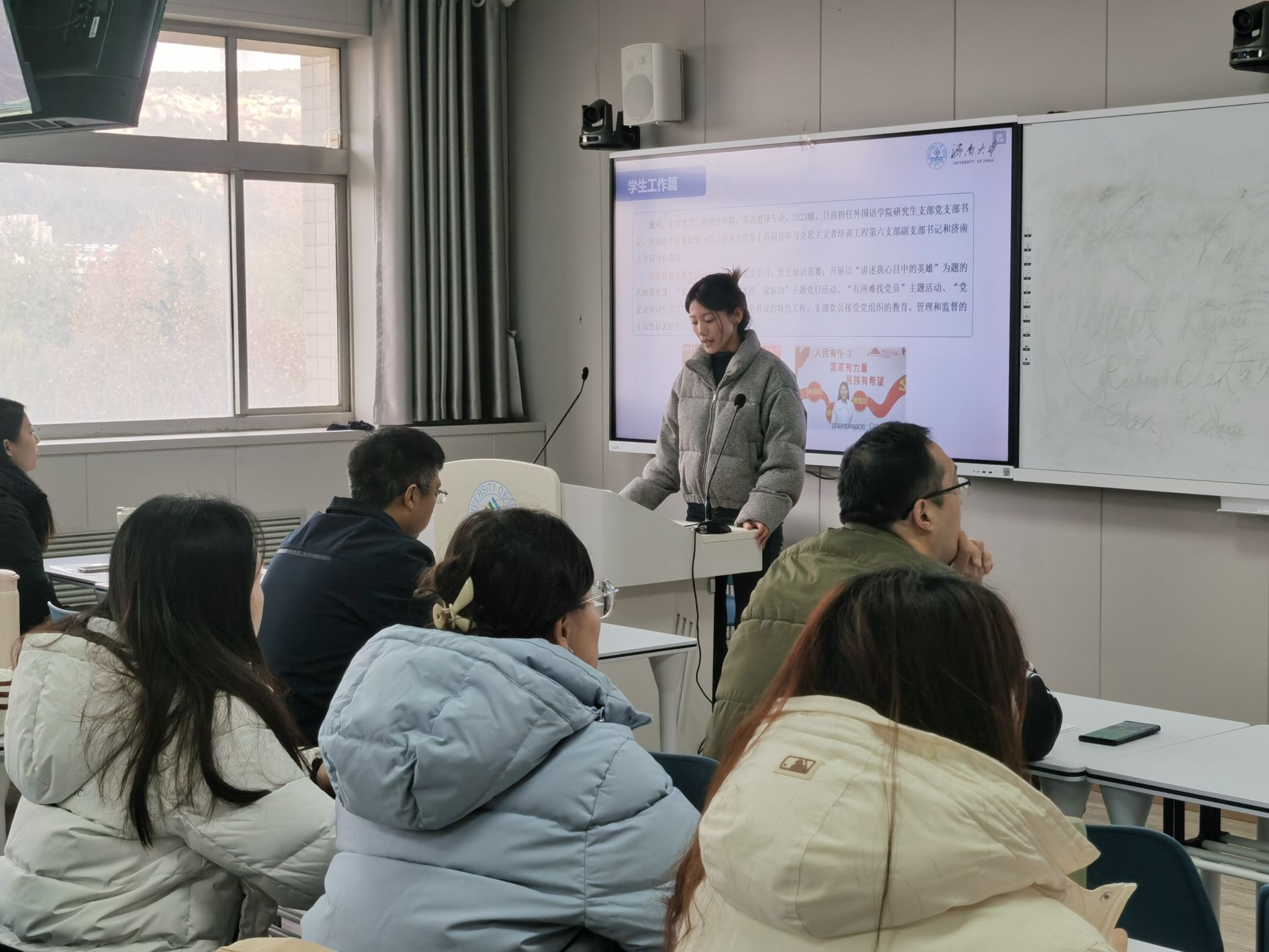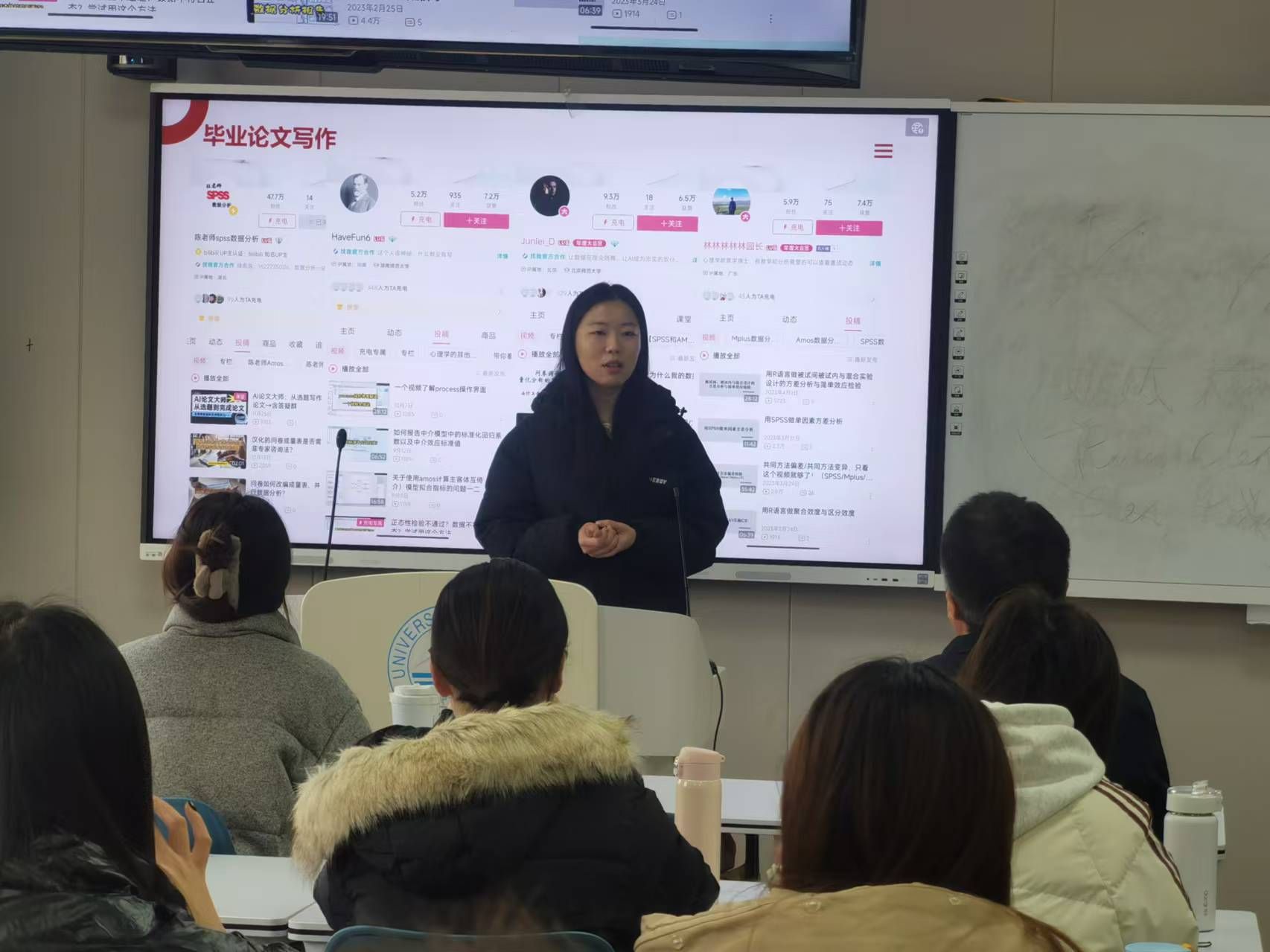 戴琳就其个人学习工作、科技创新、志愿服务实践以及毕业论文的撰写等多个维度,进行了全面且深入的阐述与分享。她认为,研究生在校期间应当高效利用课上课余时间,主动关注并积极参与到与本专业密切相关的各类竞赛活动中,以此作为拓宽专业知识视野、积累宝贵实践经验的有效渠道。她着重强调,制定并执行个人研究计划至关重要,并以英语笔译专业为例,为同学们提供了关于研究进度安排的参考建议。邵源源着重于专业实践领域,紧密结合专业硕士的培养特色,进行了深入浅出的分析与分享。她认为,实践环节的重要性不容小觑,并建议同学们务必将理论知识与实践操作紧密结合,通过实践不断磨砺自我,实现能力素质的提升。在毕业论文写作方面,邵源源建议同学们充分利用线上与线下资源,掌握更为高效的数据处理方法。两位同学的分享内容丰富、见解深刻,为在场的同学们提供了极具价值的实践指导与深刻启示。