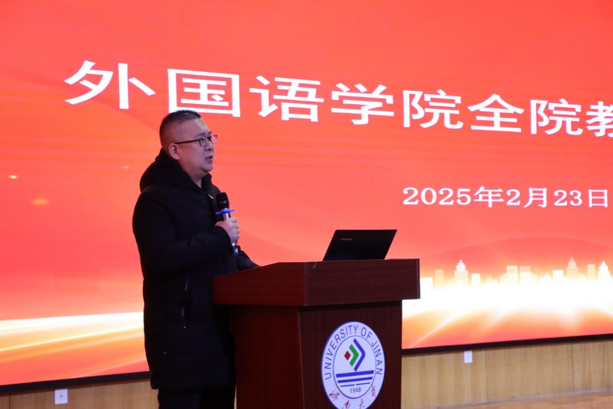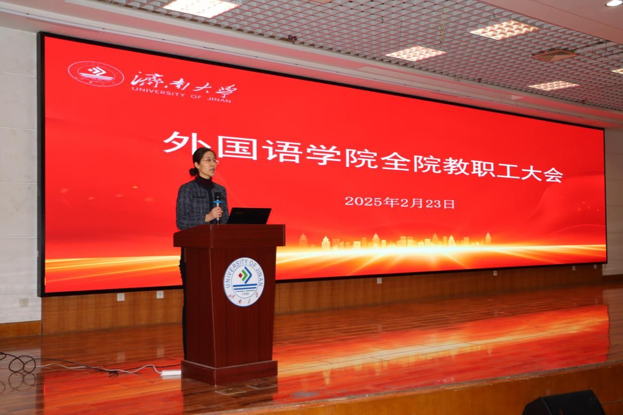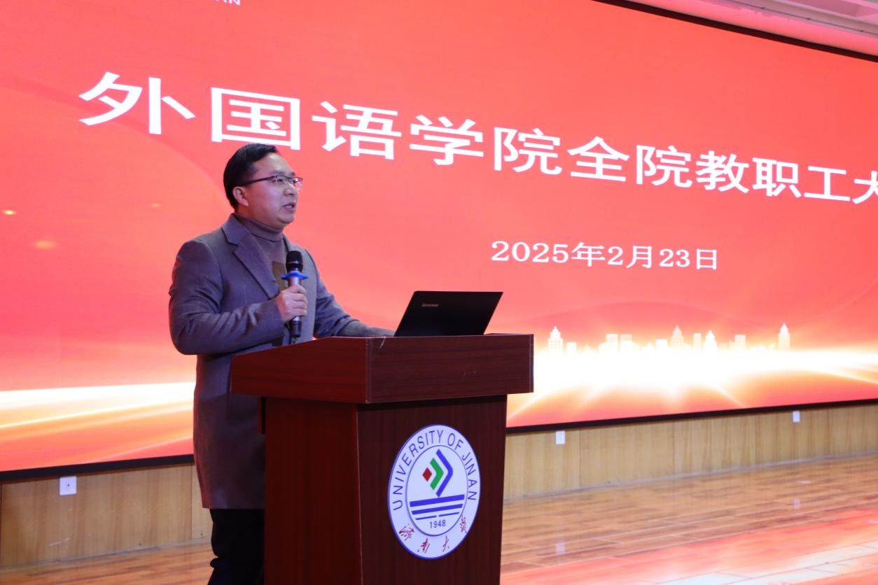 郭英传达了四届六次全委会扩大会议精神,带领全体教职工深入学习了刘春华书记《改革创新谋发展 担当实干提质效 聚力加快“冲一流、进百强”奋斗步伐》的工作报告和刘宗明校长关于2025年学校重点工作部署要求。她强调,今年是学校“十四五”规划的收官之年和“十五五”规划的谋划之年,是实现第四次党代会目标任务的承上启下之年,同样也是学院充满机遇与挑战的一年。全体教职工要认真学习领会报告内涵,抓好会议精神的贯彻落实,以更高的标准、更严的要求、更实的举措,推动学院各项工作再上新台阶。会上,郭英还对2024年学院党委工作进行汇报,并就校园安全和师德师风建设等工作做了进一步要求,提高全体教职工的思想认识、细化防范措施、明确师德底线,将校园安全与师德师风建设工作落到实处。