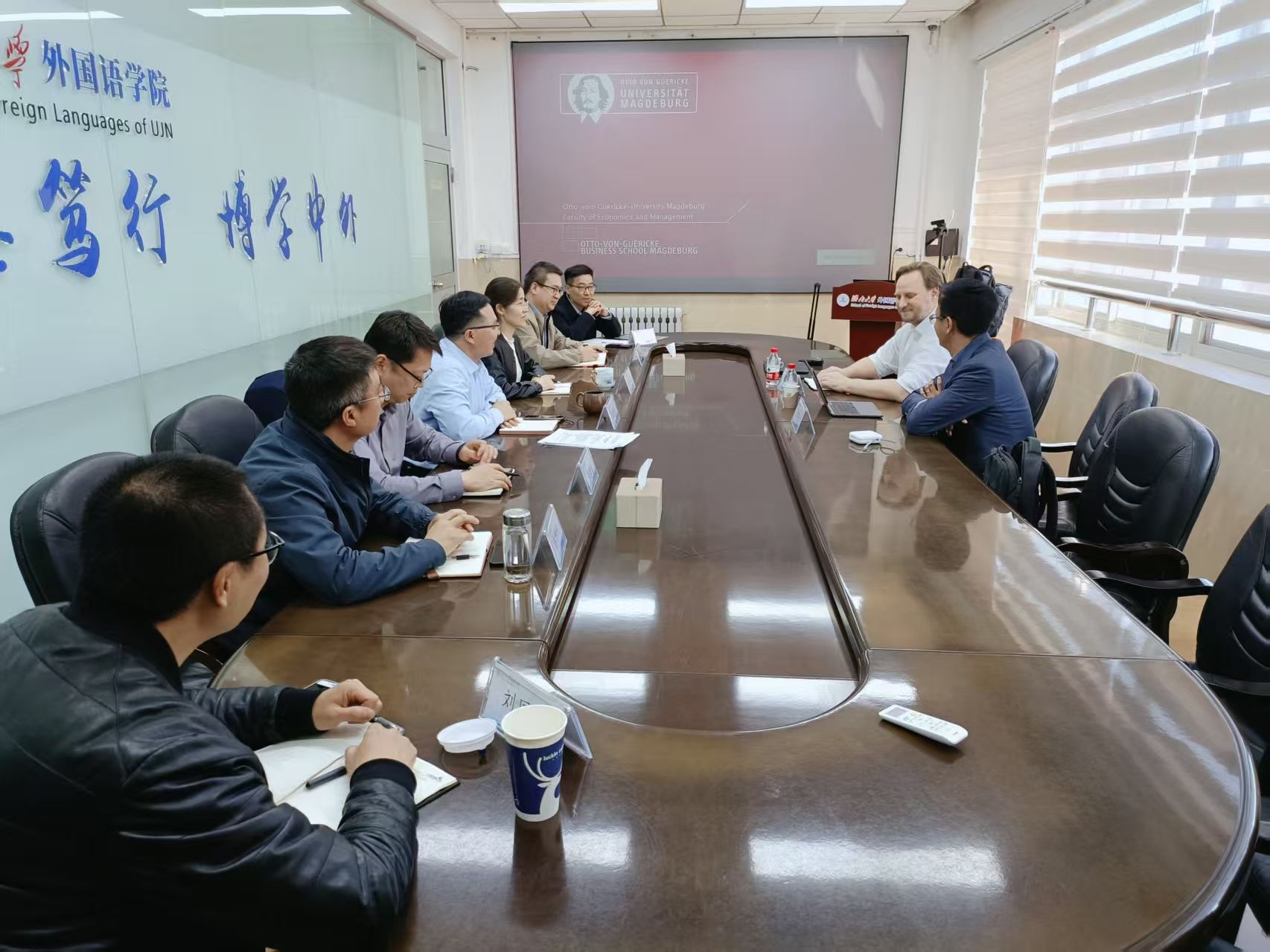 4月2号下午,德国马格德堡大学商学院执行院长Christian Stahr,中国办事处负责人李晓龙一行来学院交流访问,学院领导班子和学院德语系、国际语言与出国留学服务中心教师代表参加活动。