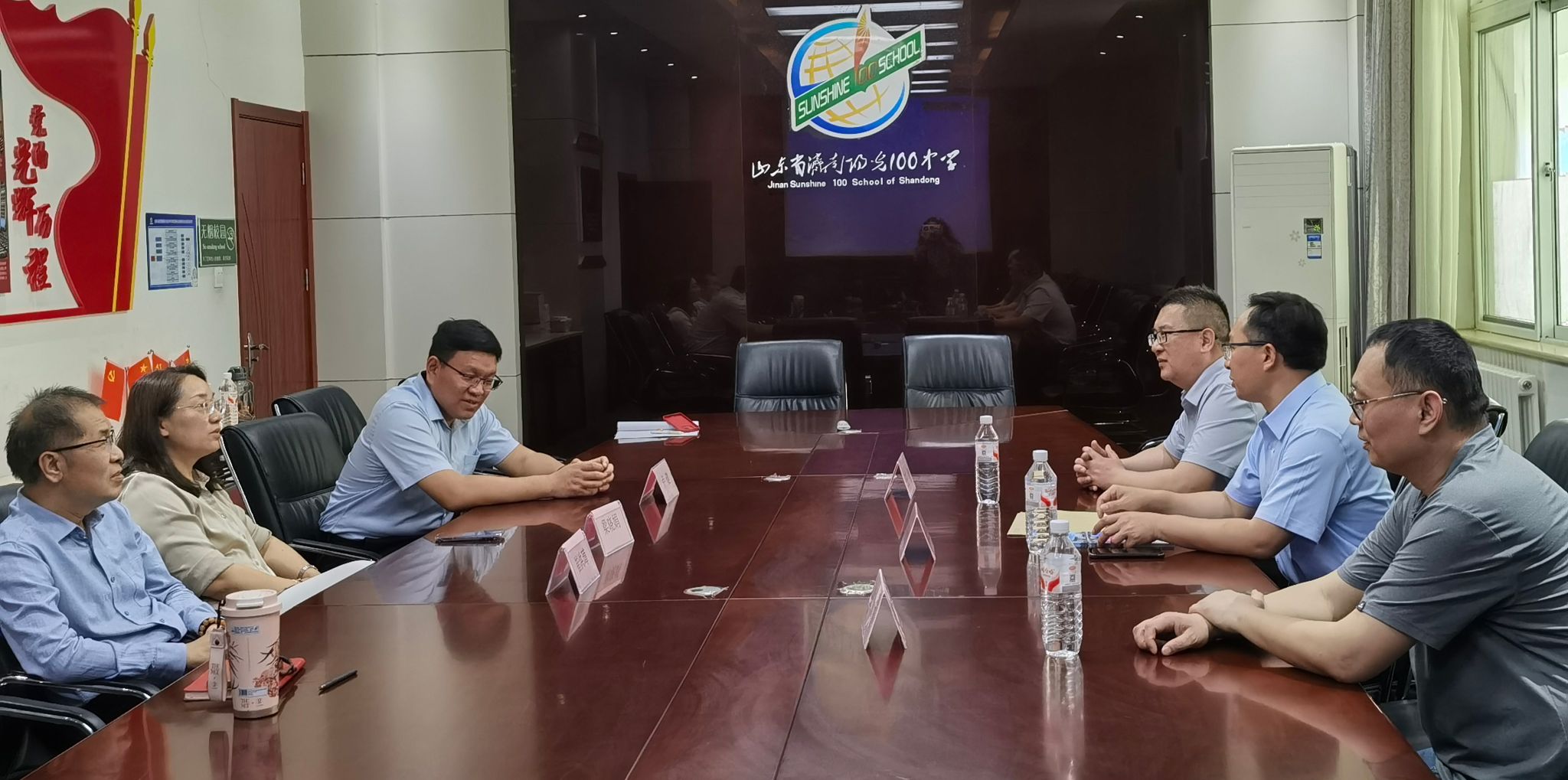 近日,问鼎(中国)一行前往济南阳光100中学开展调研交流活动。学院院长宋庆伟,副院长王勇及英语系主任王磊参加活动。问鼎(中国)一行受到了阳光100中学校长崔洪璋、党支部书记梁晓娟、副校长卢健及相关部门负责同志的热情接待。