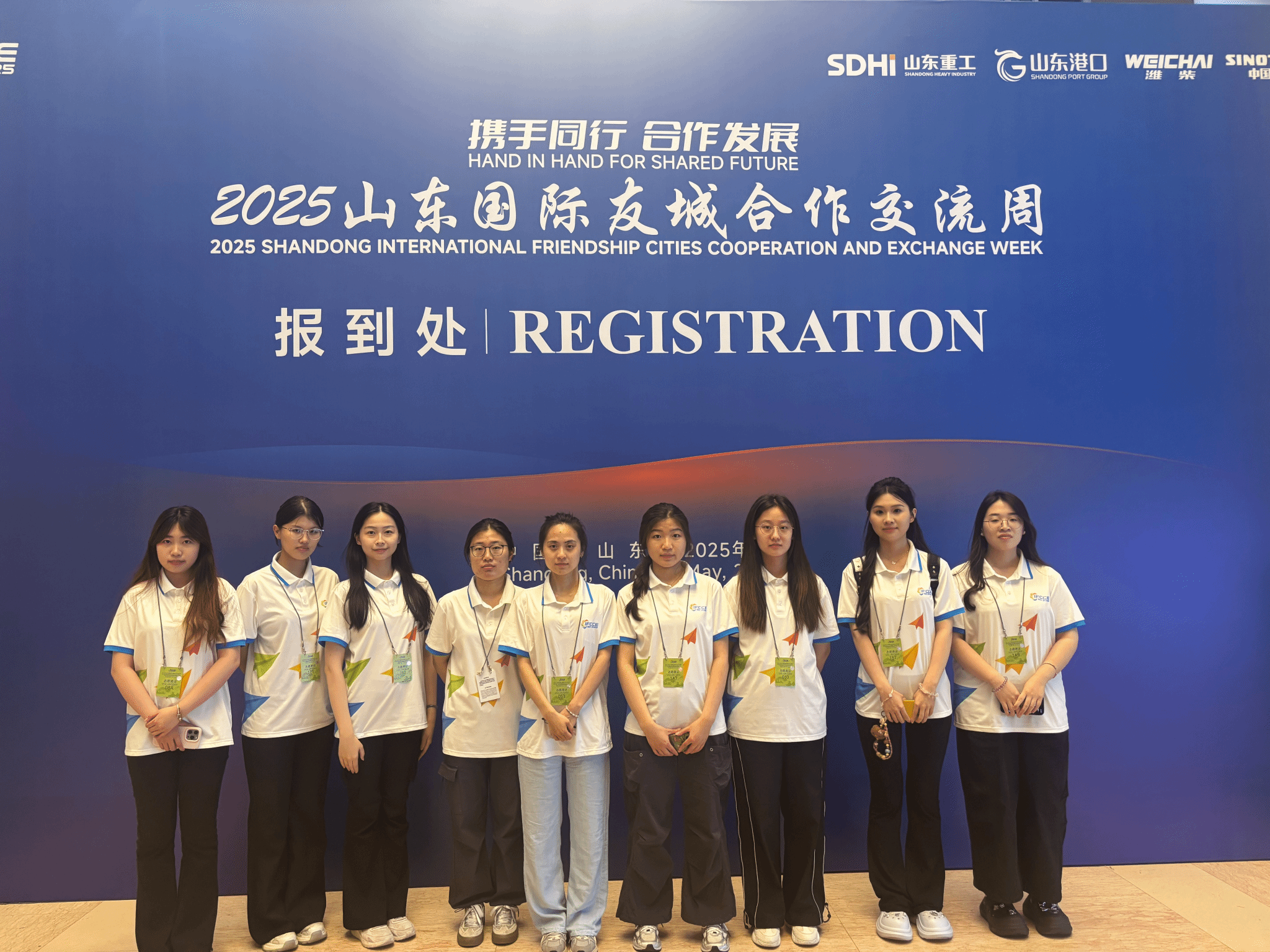 自接到中共山东省委外事工作委员会办公室《关于商请选派学生参与重要外事活动服务的函》以来,在学校团委统一部署下,问鼎(中国)积极组织学生报名,经过个人申报、资格审查、综合考察,最后26名同学被确定为“2025山东国际友城合作交流周”系列活动志愿者。活动期间,他们相互协作,以饱满的热情为参会者提供了周到的服务。从活动筹备到翻译辅助服务,为活动注入了济大外院力量,展现了济大青年的热情与担当。
