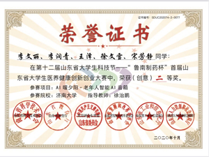在10月30日至31日举行的总决赛中,经过大家的不懈努力,李文丽带领团队最终在山东省首届大学生医养健康创新创业大赛中披荆斩棘,取得二等奖的好成绩。