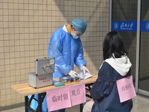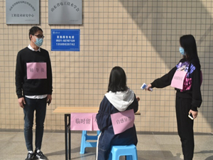 此次演练,模拟一教610语音室上课学生出现自感异常,报告任课老师、辅导员及场地联络员后,辅导员立即将自感异常学生引致一楼临时留观点,场地联络员复测体温并拨打校医院电话,通知医院值班人员赶赴现场进行复检、信息采集。教室内任课老师及学院其他工作人员登记教室内学生信息。