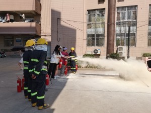 随后,学校安全管理处消防科科长赵玉琦向大家介绍了灭火器的使用方法,并强调在使用过程中应牢记“一提二拉三握四压”八字口诀。在工作人员指导下,现场师生分组进行模拟灭火实战演练。本次消防演练活动的顺利完成,为师生们上了一场生动的消防安全课。