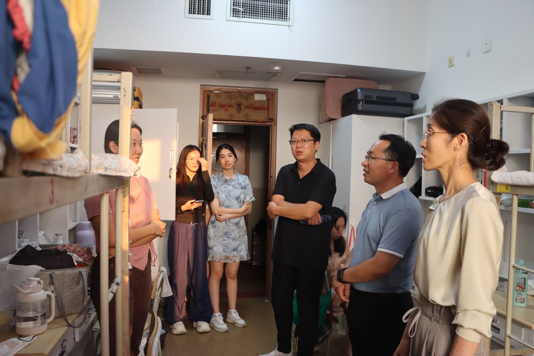 走访过程中,学院领导与同学们亲切交谈,详细了解新生报到后在校情况,并向新生们介绍大学学习、入学教育的安排,解答新生提出的一些疑问,叮嘱同学们要及时休整,加强安全防范。新生们纷纷表示,感谢各位老师关心和关爱,一定牢记老师们的嘱托,积极适应大学生活,坚定理想信念,树立远大目标,为自己的大学生活做好规划。