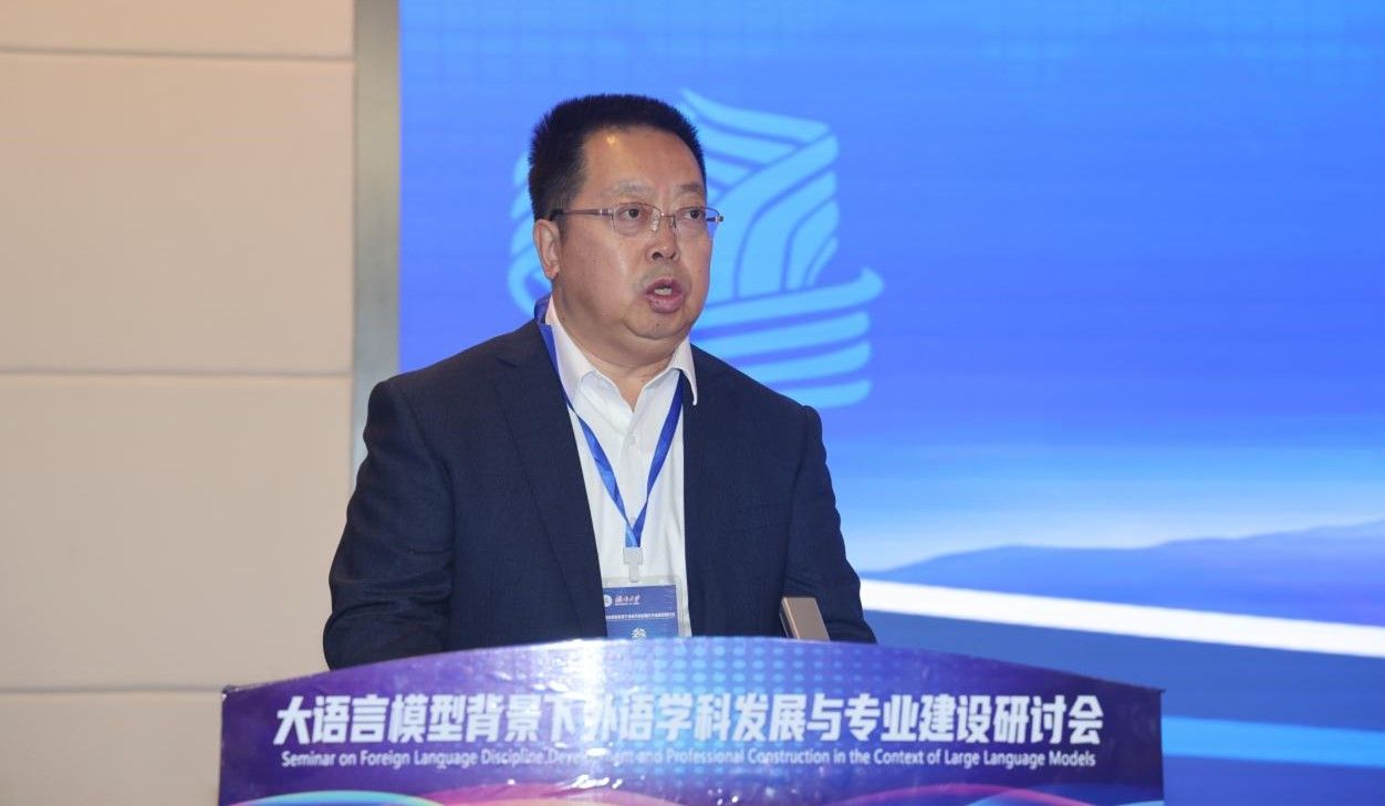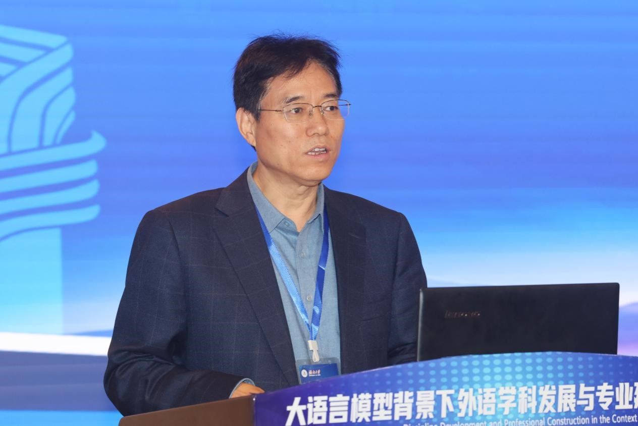 胡开宝教授在致辞中指出,外国语具有工具性、文学性、科学性特点,大语言模型技术在外语教学中的应用具有非常广阔的前景,外语学科现有课程体系和专业设置未能对接大语言模型技术以及人工智能技术的发展,面向大语言模型的外语学科教育和研究亟需开展,以创新驱动教学,以研究驱动教学。