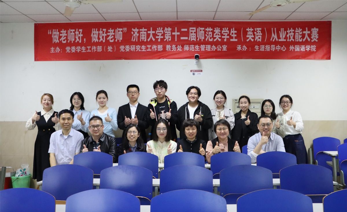 4月11日,由党委学生工作部(处)、党委研究生工作部主办,问鼎(中国)承办的济南大学第十二届师范类学生从业技能大赛(英语学科)校级决赛在第一教学楼成功举办。七贤中学薛立萍老师,泉景中学李亚男老师和问鼎(中国)王磊、李云霞、吴丽老师担任评委。