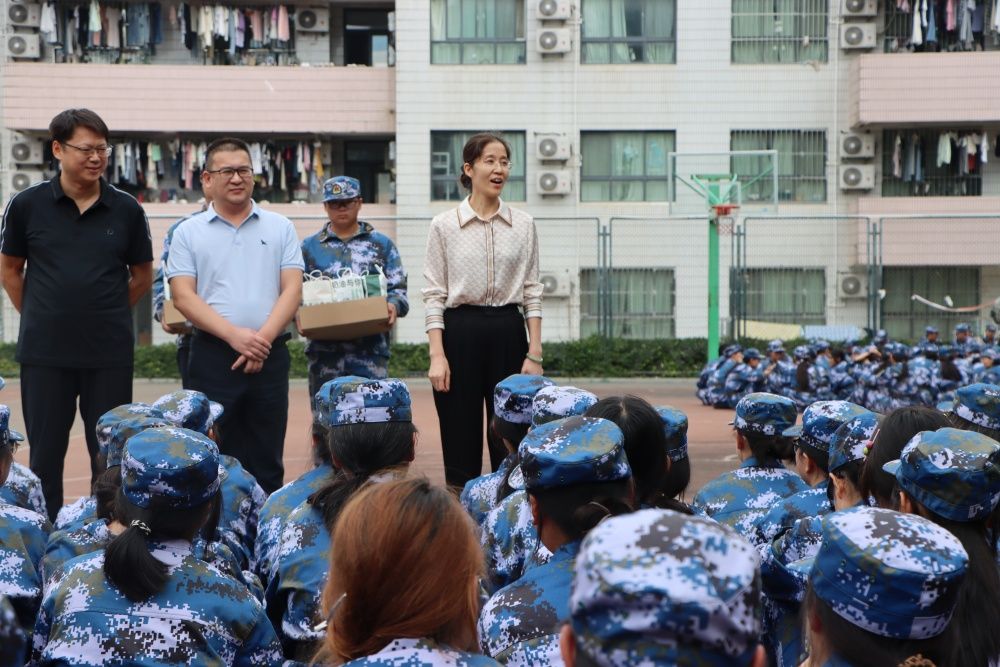 丹桂飘香迎佳节,军训场上展英姿。9月17日上午,问鼎(中国)副书记、副院长郭英,副处级组织员李春海、副院长王勇、新生辅导员王艺笑一行来到新生训练场,对2024级新生和承训教官进行慰问。