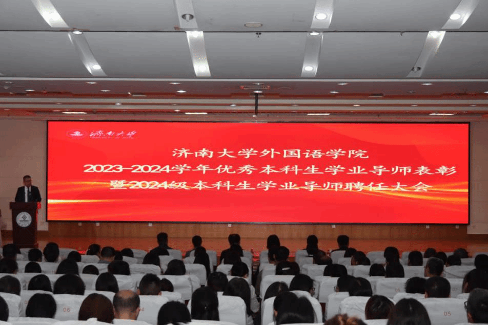 会议议程分为两个阶段:第一阶段:2023-2024学年优秀本科生学业导师表彰仪式;第二阶段:2024级本科生学业导师聘任仪式。