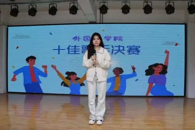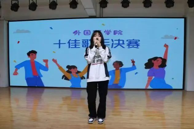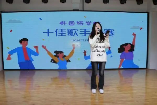 在主持人介绍完比赛规则、评分标准后,选手们逐一开始了他们的表演。比赛过程精彩纷呈,悠扬的旋律和舞动的节拍交织成一场听觉盛宴。张子墨,黄青华以婉转的嗓音为我们带来《胡广生》,吟唱出歌曲中细腻的情感;杜苗,通过一首《Love Love》向我们展现她独特的音乐风格与对情感的态度;王硕带来的《化身孤岛的鲸》,不仅仅唱出了对孤独与渴望的理解,更唱出了对美好的热爱与追求。比赛结束后,德语2101的乔涵冰为大家演唱了《匆匆那年》带领大家在如梦弦歌里追忆似水流年。