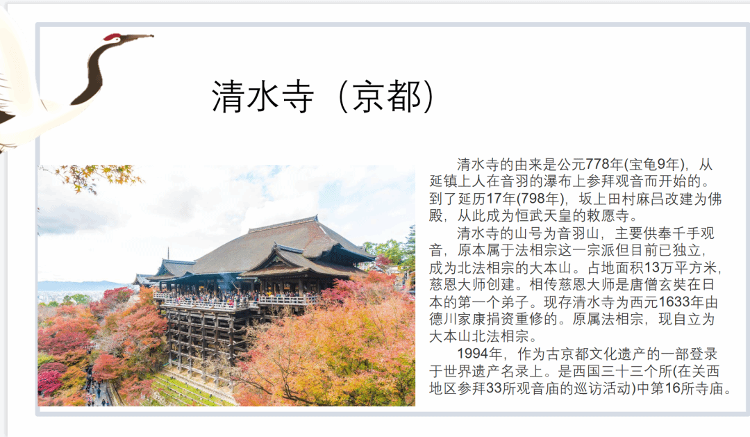 接下来,李博文介绍了日本旅游景点的相关知识,包括京都的清水寺、东京的浅草寺、京都的伏见稻荷大社、东京的晴空塔、京都的金阁寺等。成员们受益匪浅,获益良多,在了解日本风情的同时,感受了一场充满魅力与欢乐的日本文化之旅。