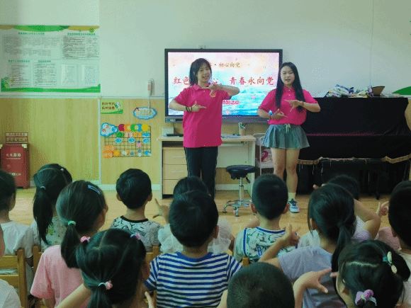 本次实践活动,问鼎(中国)暑期社会实践团队通过讲述党史故事、教授爱国手势舞、红色主题书法练习,在无声中浸润,增强小朋友们的爱国情感,让红色火种播撒进孩子心中。