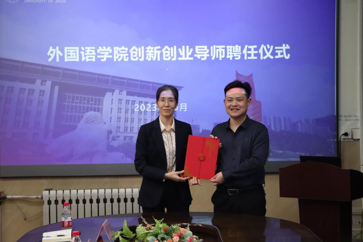 随后,学院党委副书记、副院长郭英为裴书峰校友颁发创新创业导师聘书。