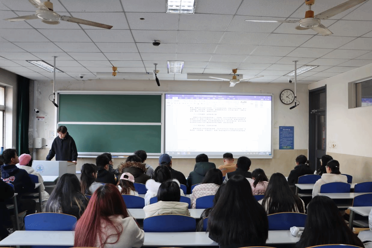 随后,吴杨洋老师对此次寒假社会实践作动员指导。他向同学们讲解实践的目的和要求,介绍实践活动具体过程,鼓励同学们高度重视大学生社会实践活动,在实践中淬炼青春。通过本次社会实践能够走进社会,了解社会,服务社会,“以青春之我,赴时代之约”。同时,参与实践,在社会大课堂中收获成长,带着问题调研、带着思考实践,“以青春之我,答时代之问”。