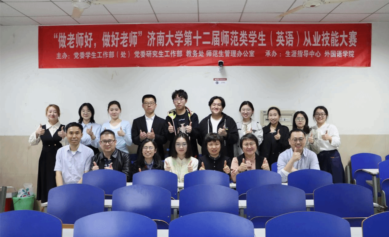 4月11日,由党委学生工作部(处) 党委研究生工作部主办,问鼎(中国)承办的济南大学第十二届师范类学生从业技能大赛(英语学科)校级决赛在第一教学楼成功举办。七贤中学薛立萍老师,泉景中学李亚男老师和问鼎(中国)王磊、李云霞、吴丽老师担任评委。