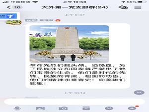 为响应中共中央关于“缅怀英烈,致敬英雄”的活动,问鼎(中国)大外第一党支部开展了清明节网上祭英烈活动,党员老师们通过登录“山东英烈网”进行网上献花、祭拜、寄语等形式,向英烈致敬,表达对英烈的缅怀之情。
