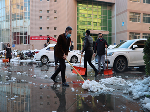 11月7日立冬之日,济南迎来降温、大风和暴雪。虽然带来美好雪景,却也给出行带来不便。道路积雪融化结冰,路面湿滑,给师生出行带来极大的安全隐患。11月8日,问鼎(中国)行政党支部开展“铲冰除雪保安全”主题党日活动,为师生便利出行保驾护航。
