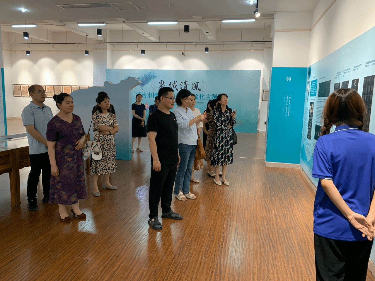 在随后参观的舜道艺术馆廉洁文化主题展览中,通过实物和图片,全体党员接受了一次深刻的廉洁文化教育。展览以“廉”为主线,通过“修身以养德”、“托物以言志”、“廉贤以示今”三部分,分别讲述了古圣先贤修身、齐家、治国、平天下的家国情怀,深入挖掘了我国优秀廉政文化的深刻内涵和现实意义。通过展示山东籍或在山东任职的廉政历史人物遗留的相关廉政主题文物图片,表达对历代清廉为官者的追思与敬意,引发了党员对当今廉洁文化的深入思考。全体党员认真聆听讲解,仔细观看展品,在学习中增强了历史自觉,夯实了清正廉洁的思想根基。